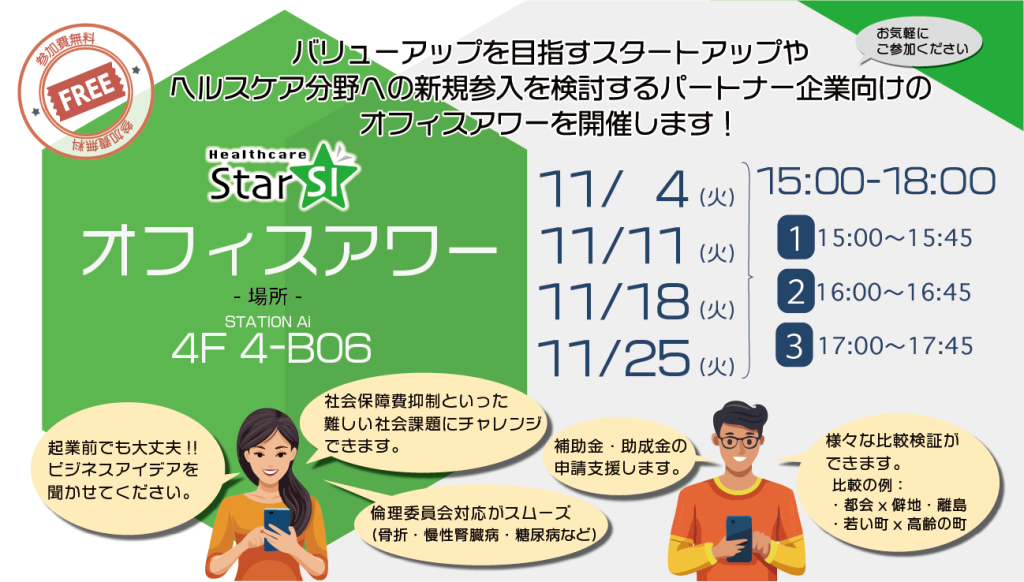 StarSI(名古屋大学経済産業省ヘルスケアスタートアップ社会実装推進拠点)からのお知らせです。
